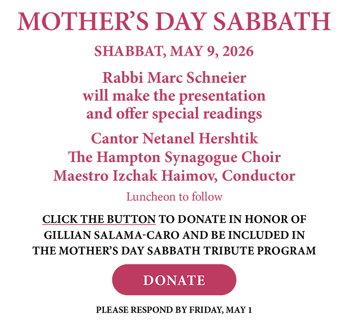 The Hampton Synagogue was founded by Rabbi Marc Schneier in 1990, in the spirit of ahavat yisrael, the love of our people, our faith, and our heritage.